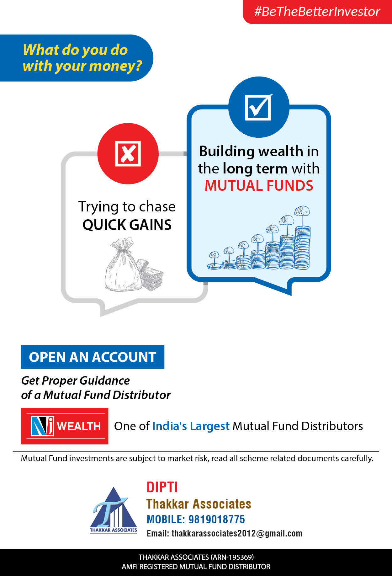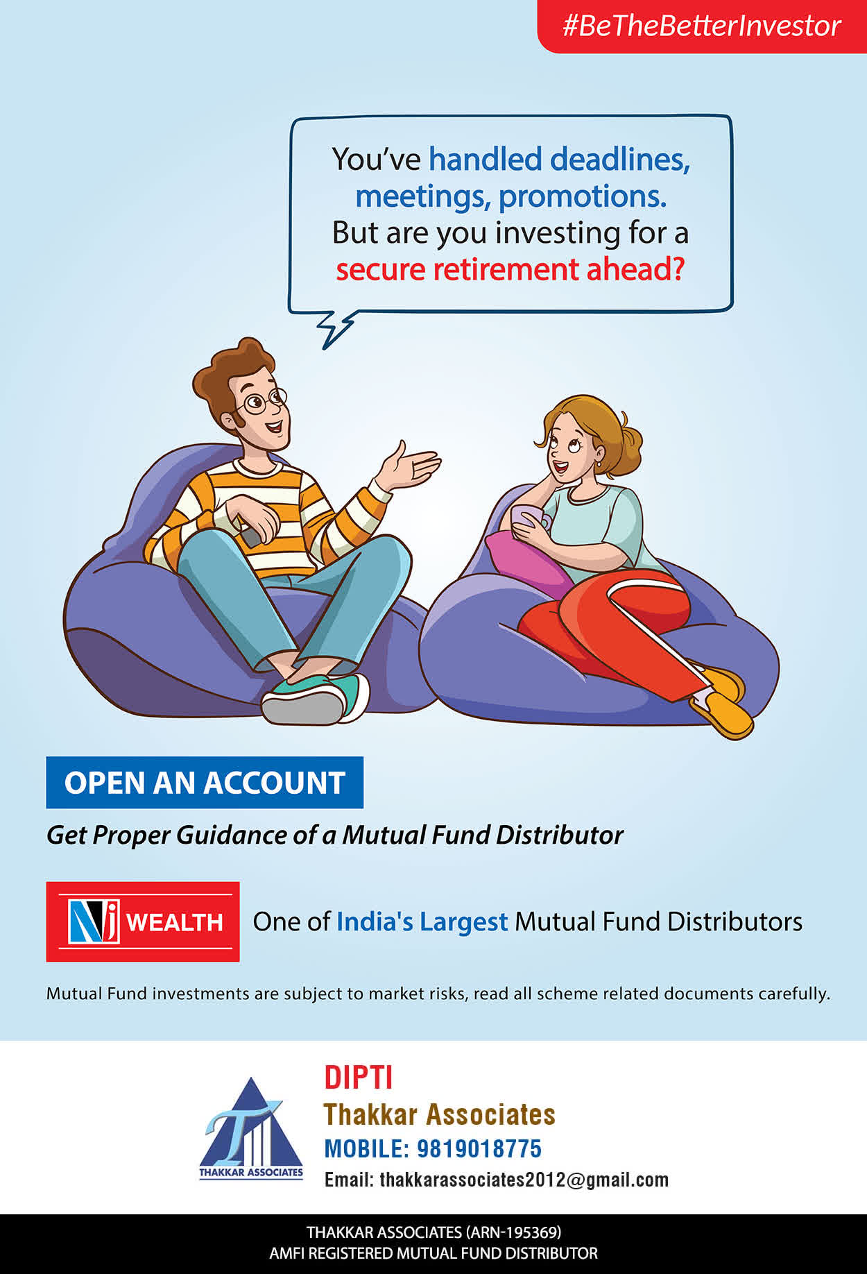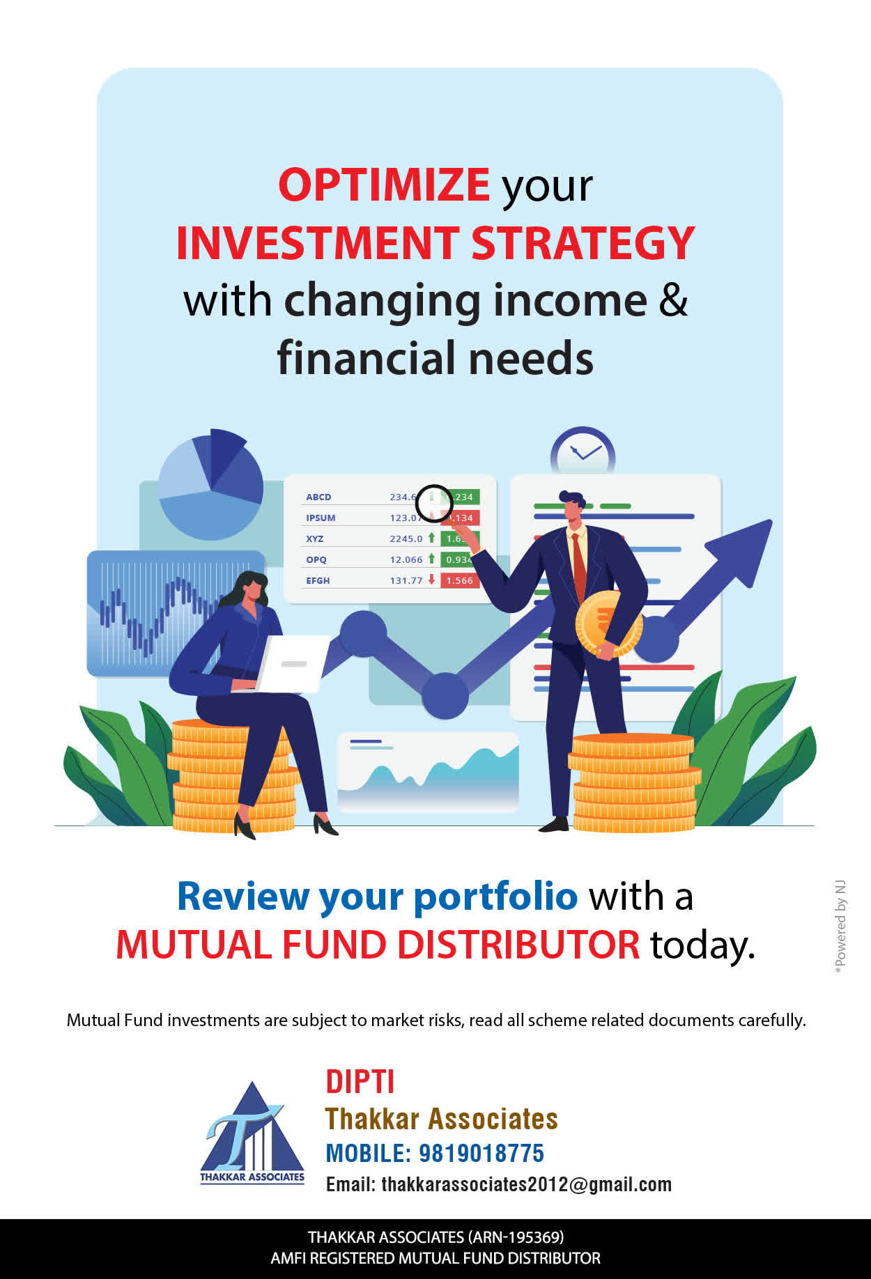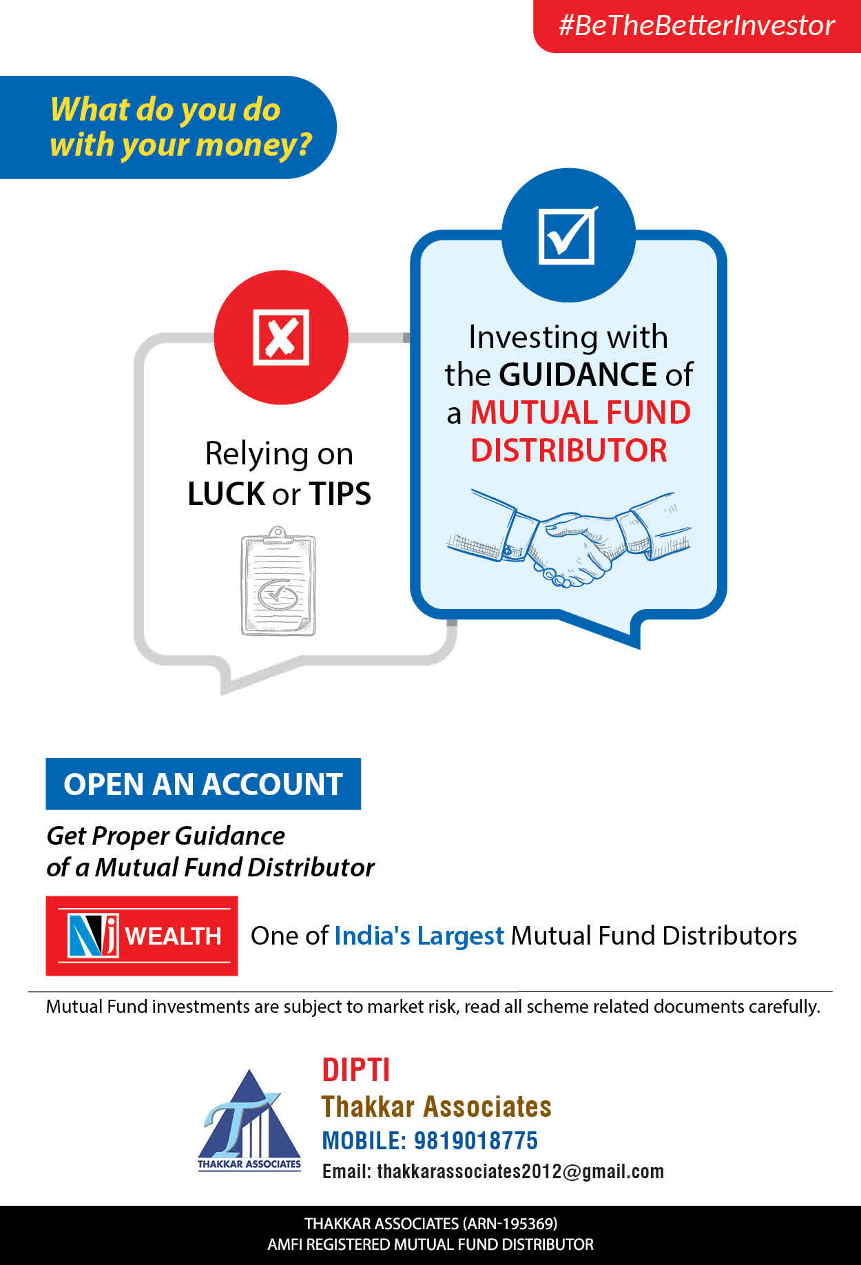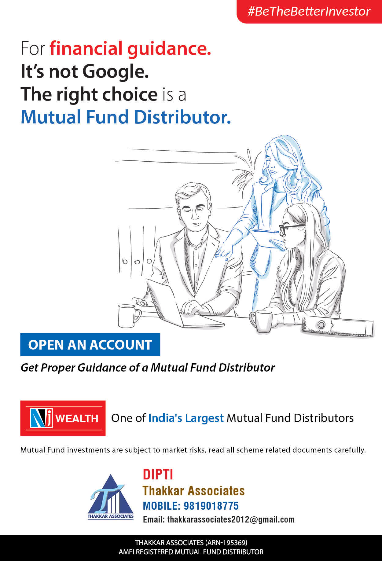 At Thakkar Associates, our mission is to provide our clients with the best solutions for wealth creation and wealth management. We are driven to provide clients with simple, unbiased, and uncluttered professional advice that adds value to the quality of their life and results in actionable solutions.