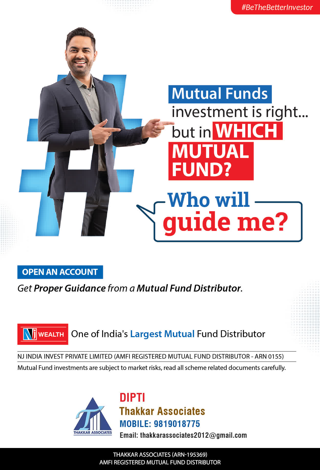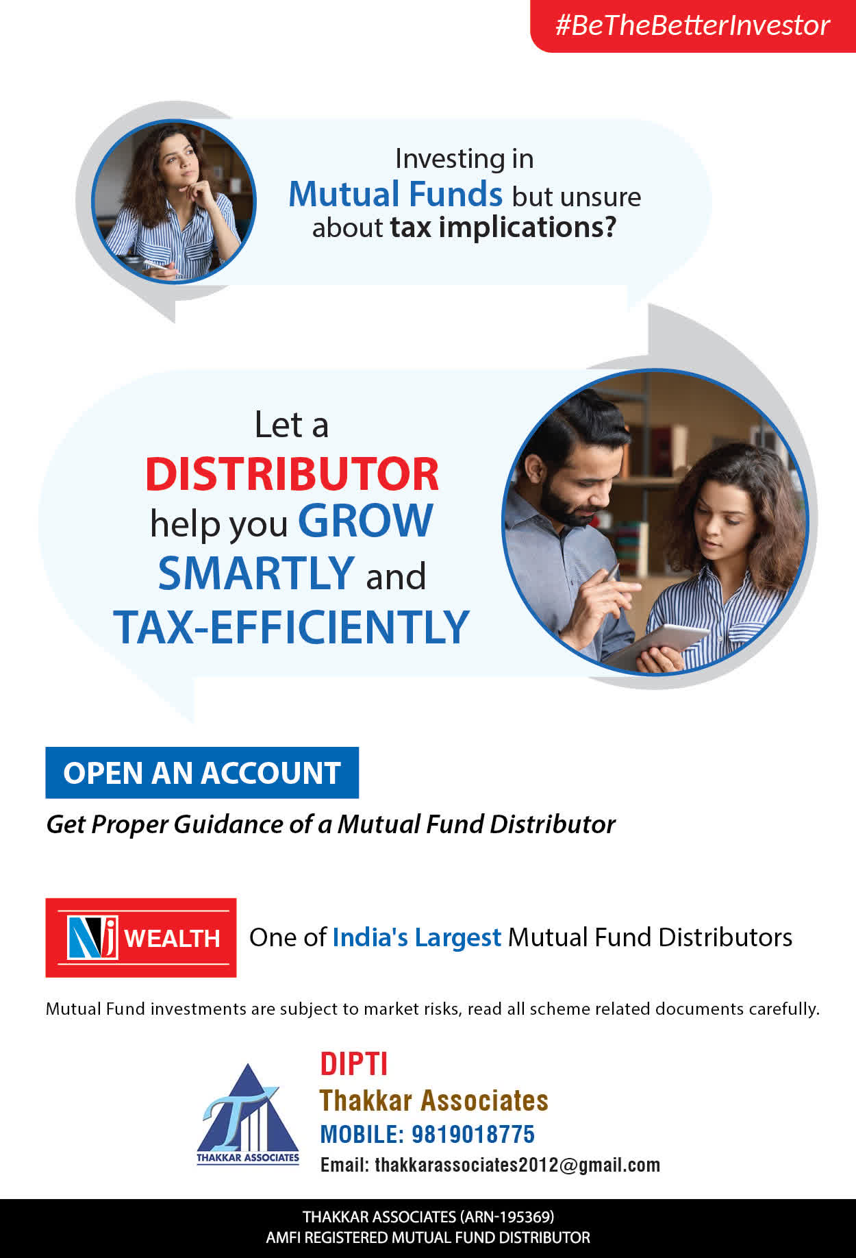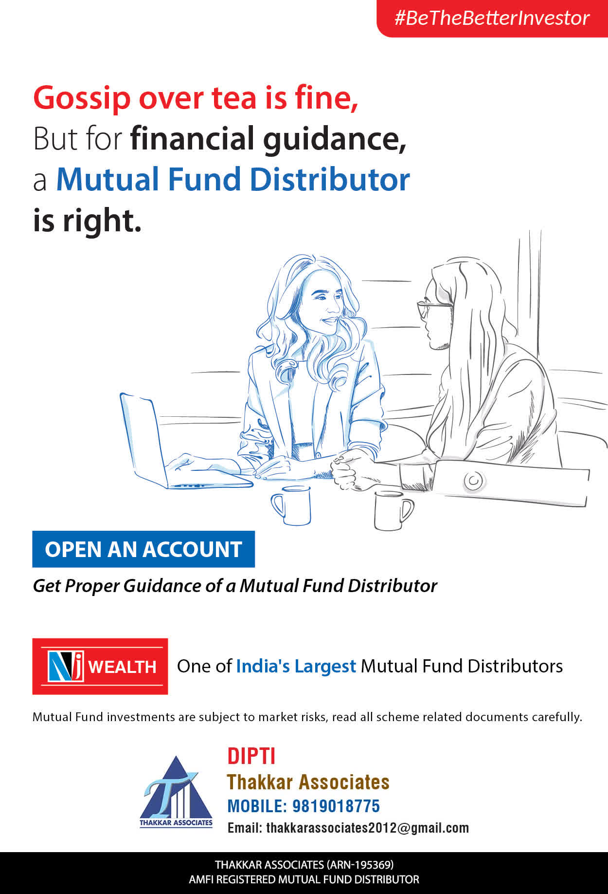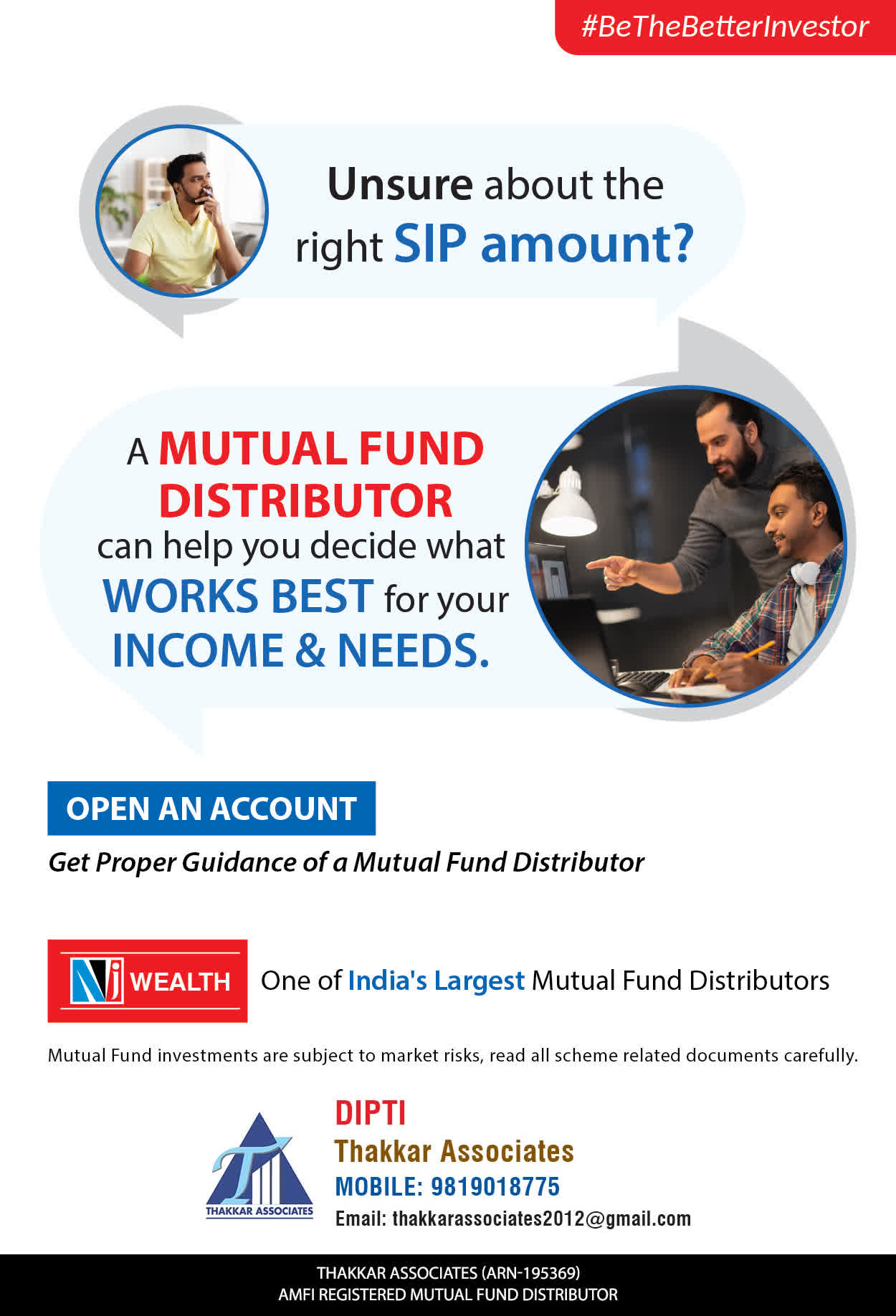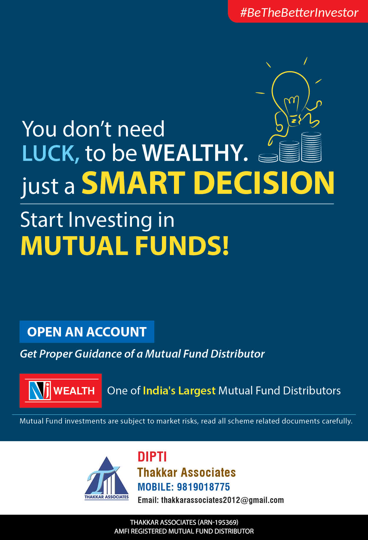 At Thakkar Associates, our mission is to provide our clients with the best solutions for wealth creation and wealth management. We are driven to provide clients with simple, unbiased, and uncluttered professional advice that adds value to the quality of their life and results in actionable solutions.